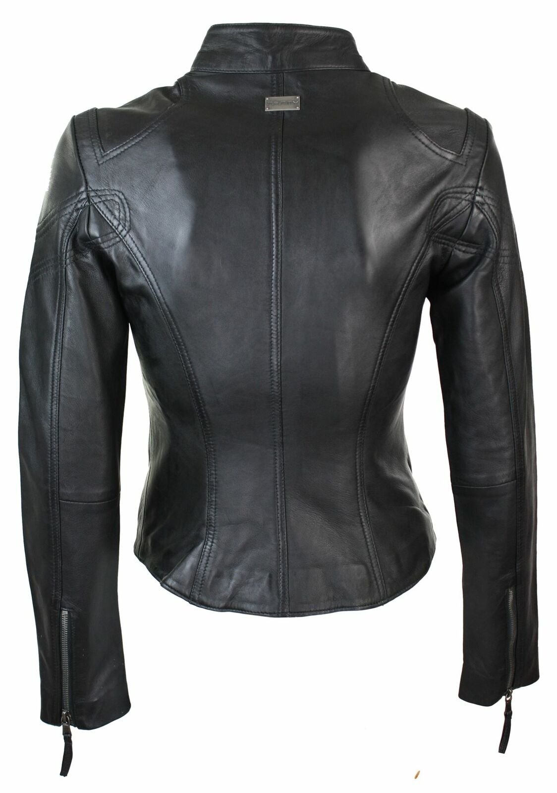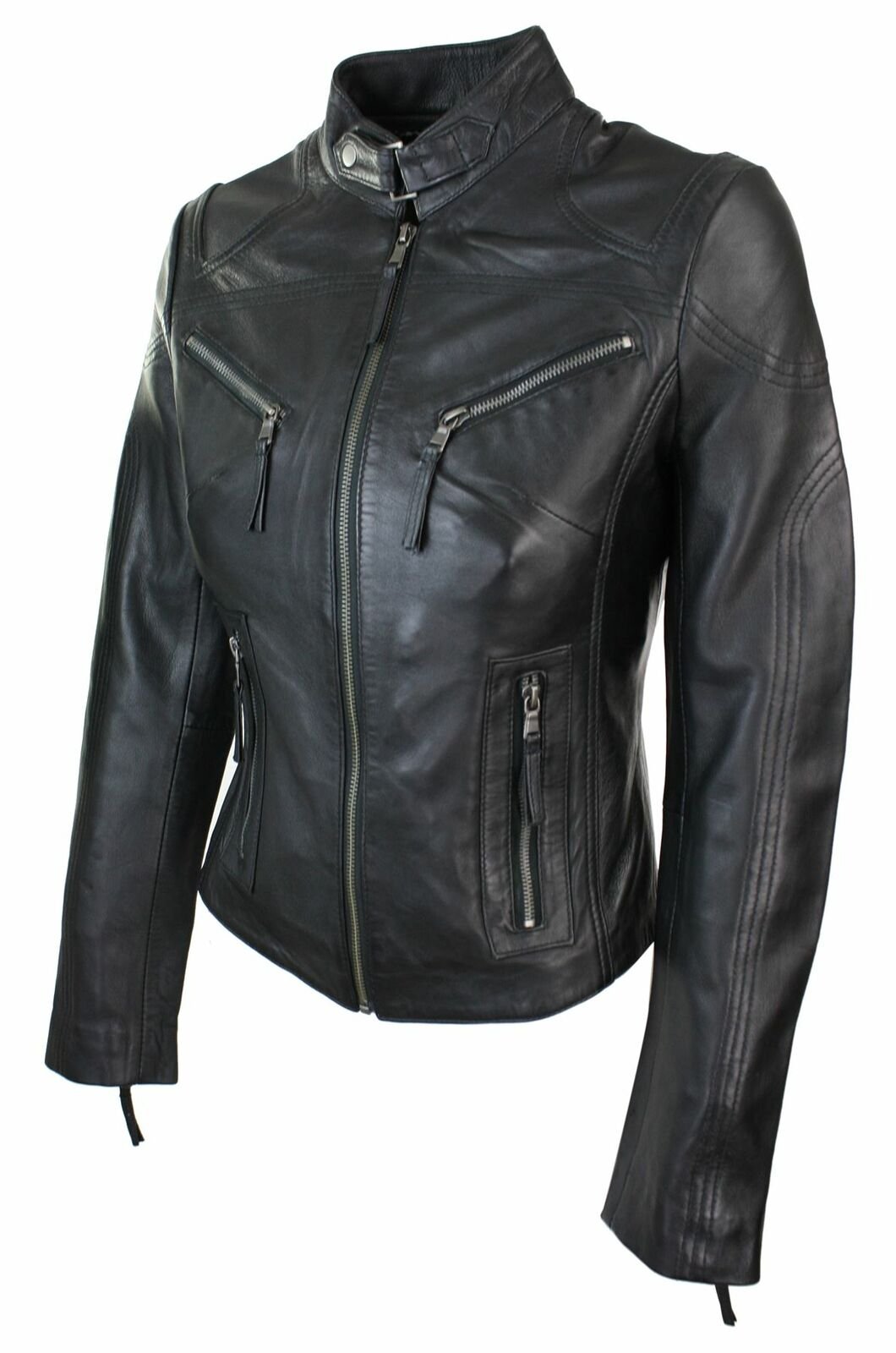 Ladies Real Leather Black Biker Style Fashion Jacket