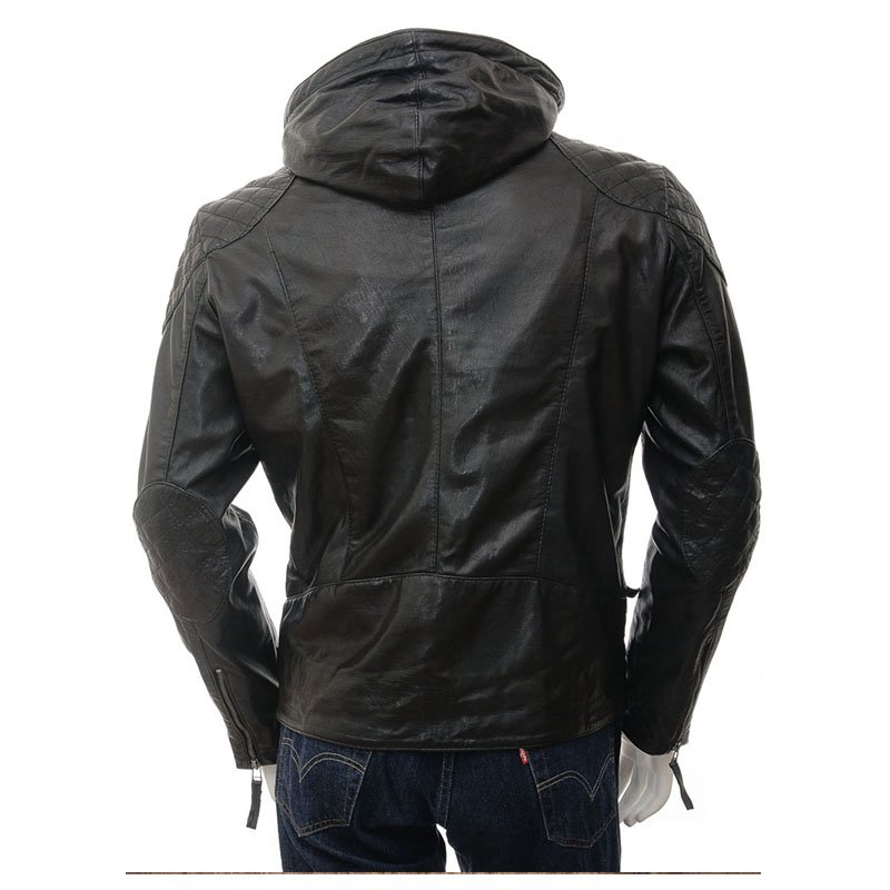MEN’S BLACK HOODED LEATHER JACKET ALLER