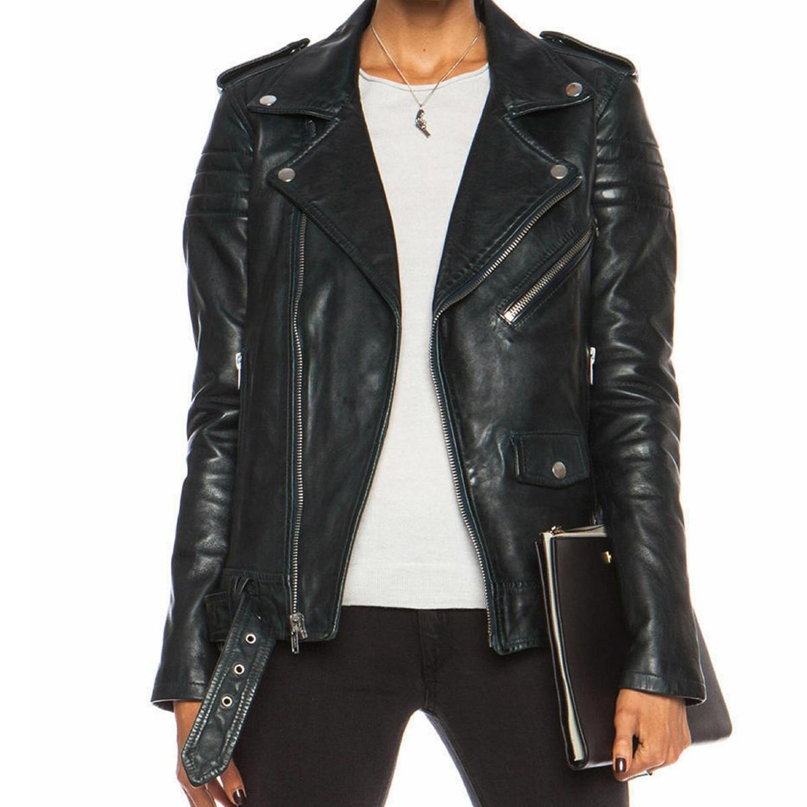Women Leather Jacket Black Slim Fit Biker Motorcycle lambskin